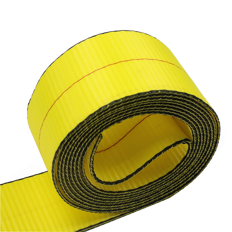 لا شيء يقول ربط المقطورة المسطحة مثل حزام الرافعة الطويل والمتين. استخدم حزام الونش المصنوع من البوليستر الأصفر مع خطاف مسطح لتأمين حمولة السرير المسطحة.