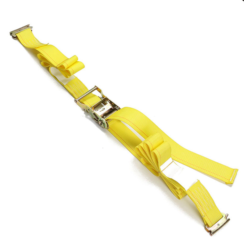 لتأمين حمولة البضائع باستخدام مشبك الكاميرا هذا المكون من 4 قطع من القضبان المجلفنة بطول 5 أقدام وأشرطة السقاطة، قم بقص التركيب E في أحد طرفي الحزام في فتحة على سكة E-Track. قم بلف الحزام حول الحمولة ثم قم بتثبيت التركيبة E في الطرف الآخر من الحزام في فتحة أخرى على السكة، أو بدلاً من ذلك، في فتحة سكة أخرى، مع تثبيت الحمولة على الحائط.